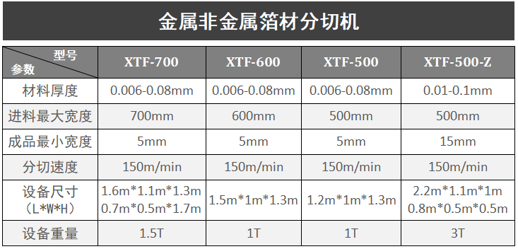 XTF-500-Z 金屬非金屬箔帶分切機(jī)是我公司暢銷(xiāo)國(guó)內(nèi)外的高質(zhì)量分切機(jī),用于分切厚度為0.01mm-0.1mm的牛皮紙,塑料薄膜,銅箔,鋁箔以及金屬化薄膜等等。